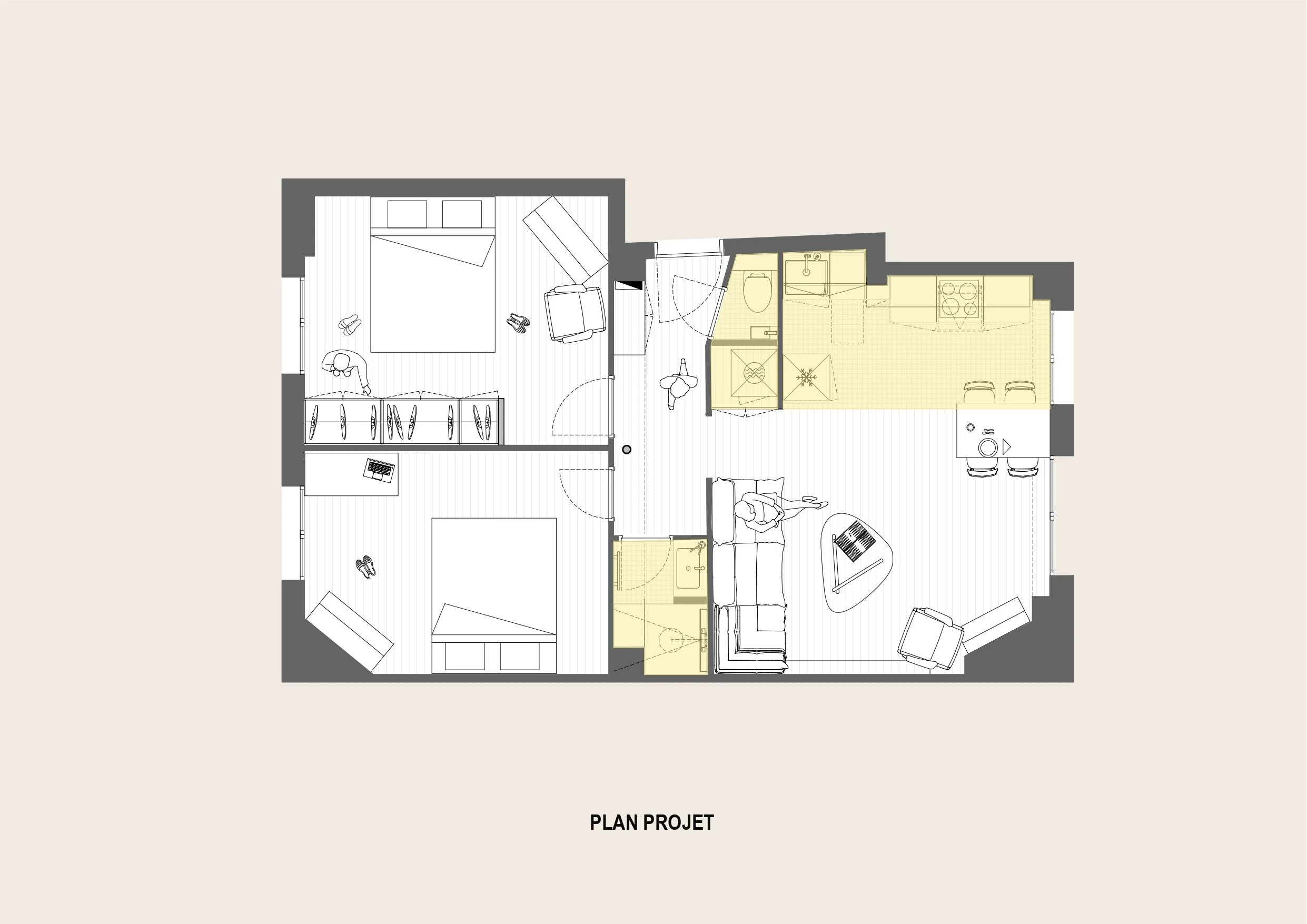 Programme : Rénovation d’un appartement // Localisation : Paris 20 // Surface : 53 m2 // Statut : En cours
